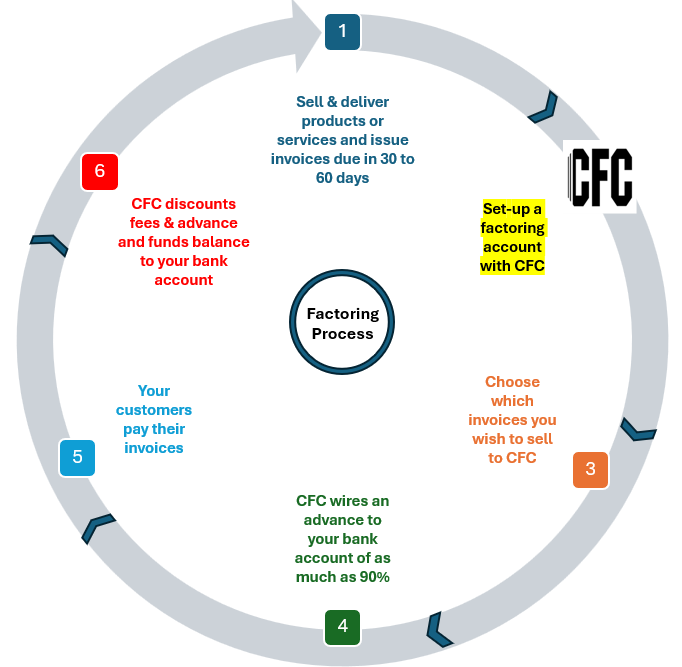 Unlike traditinal financing sources, factoring allows for the utmost financial flexibility. Whether your business is navigating through distress, adding clients or looking to capitalize on new opportunities, CFC provides a seamless solution to your capital needs.
